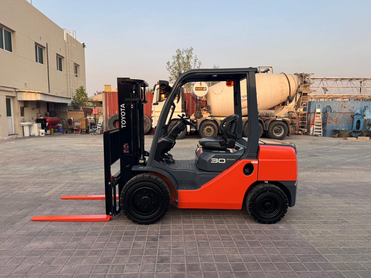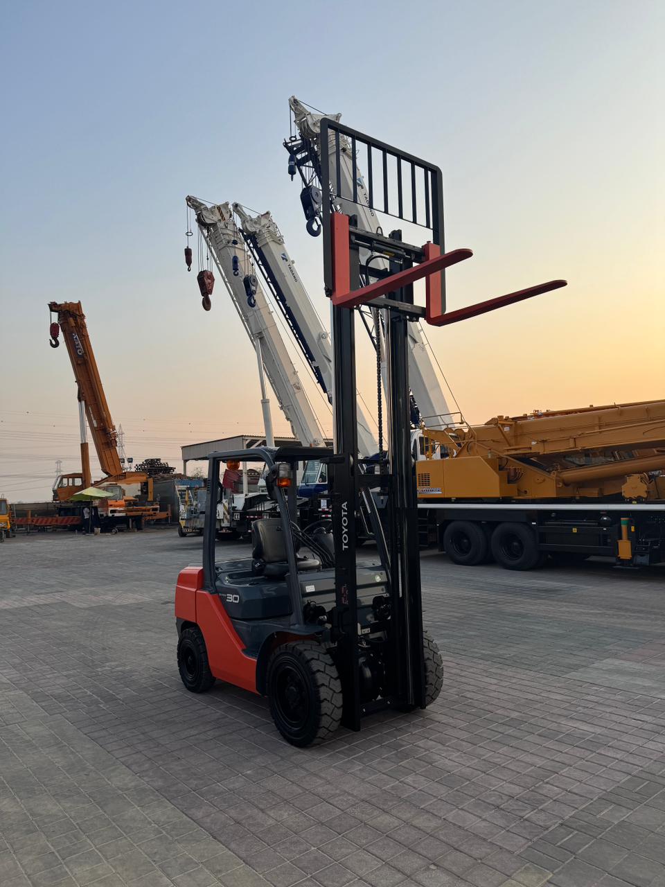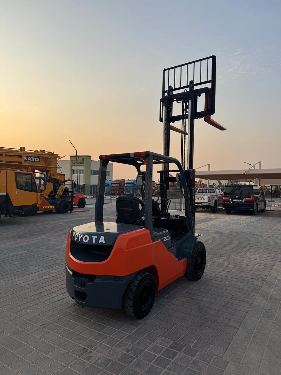 Mast: 2 Stage V Mast Mast Extended Height: 4,220 mm Lift Height: 3,000 mm Overhead Guard Height: 2,180mm Closed Mast Height: 2,120mm Fork Length: 1,070mm Carriage: with side shift Tyre Front: 28 X 9-15 SOLID Tyre Rear: 6.50-10 SOLID