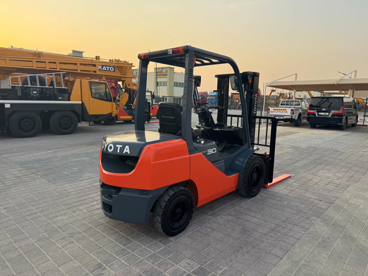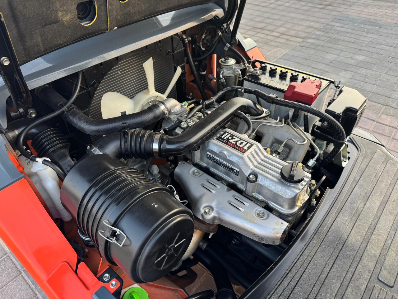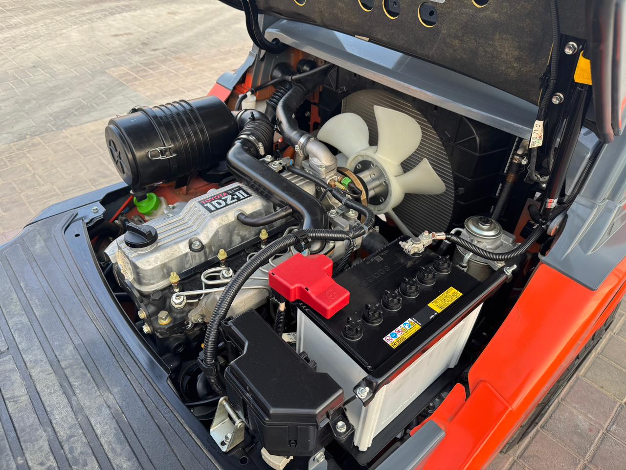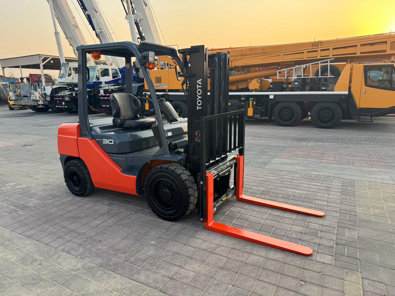 Mast: 2 Stage V Mast Mast Extended Height: 4,220 mm Lift Height: 3,000 mm Overhead Guard Height: 2,180mm Closed Mast Height: 2,120mm Fork Length: 1,070mm Carriage: with side shift Tyre Front: 28 X 9-15 SOLID Tyre Rear: 6.50-10 SOLID